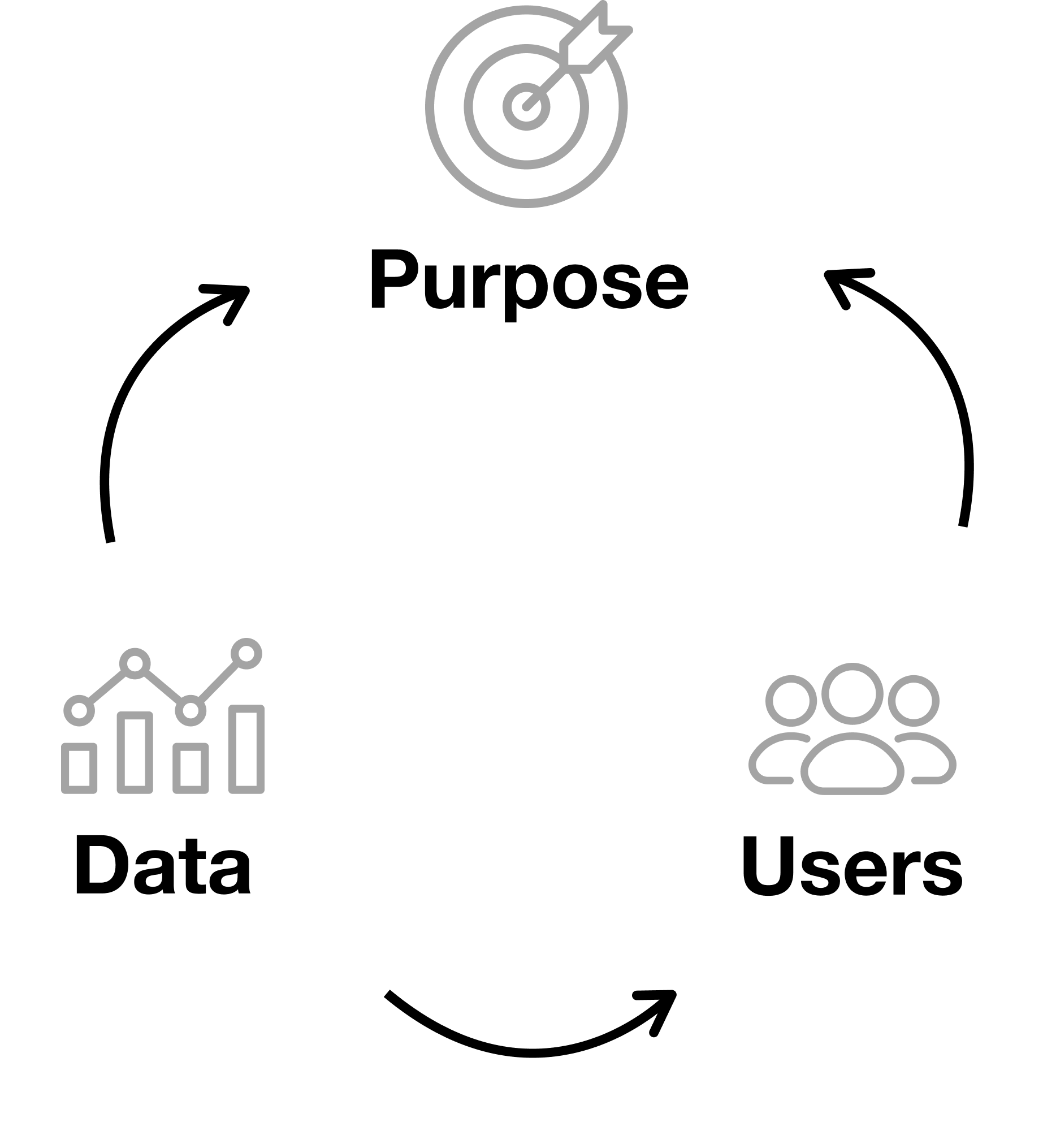 When I design data products, mainly dashboards with business and data teams, I use a framework that I first learned as a Junior Designer working at a Data Visualisation agency. This method guides our focus through the three core elements of any successful project: purpose, users, and data.